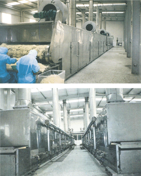 概述: 將所要處理的物料通過適當(dāng)?shù)募恿蠙C(jī)構(gòu),如星型布料器、擺動(dòng)帶、粉碎機(jī)或造粒機(jī),分布在輸送帶上,輸送帶通過一個(gè)或幾個(gè)加熱單元組成的通道,每個(gè)加熱單元均配有空氣加熱和循環(huán)系統(tǒng),每一個(gè)通道有一個(gè)或幾個(gè)排濕系統(tǒng),在輸送帶通過時(shí),熱空氣從上往下或從下柱上通過輸送帶上的物料,從而使物料能均勻干燥。